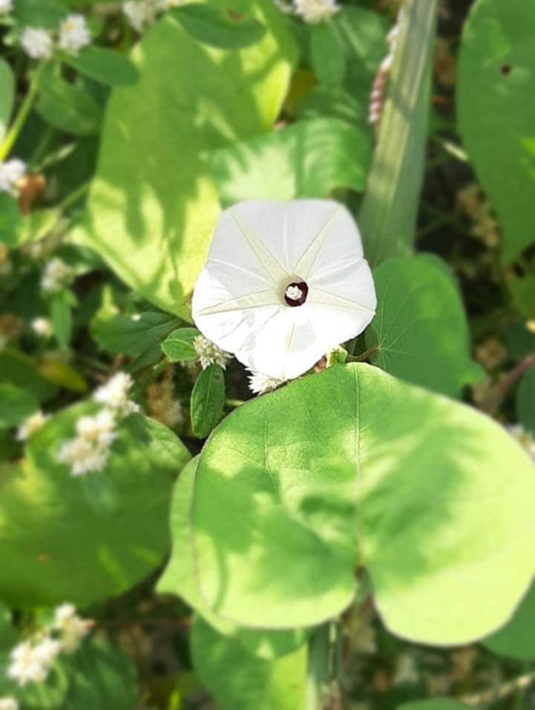 Aku memotret bunga-bunga yang berada di semak belukar di bantaran kali Banjir Kanal Timur dengan menggunakan kamera HP dengan pilihan style food, fokus di tengah dan blur di sekitar. Aku ingin menghilangkan pemandangan di belakangnya; batang yang berduri lembut, daun yang tidak indah apalagi yang sudah alum. Blur adalah pilihan agar keindahan bunga bisa terekspose. Padahal kalau dipikir lagi, bunga itu tak akan ada jika tak ada batang dan daunnya.