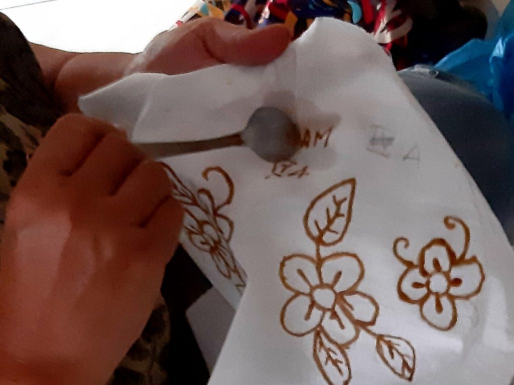 Melihat seorang anak belajar membatik di Elly Batik.