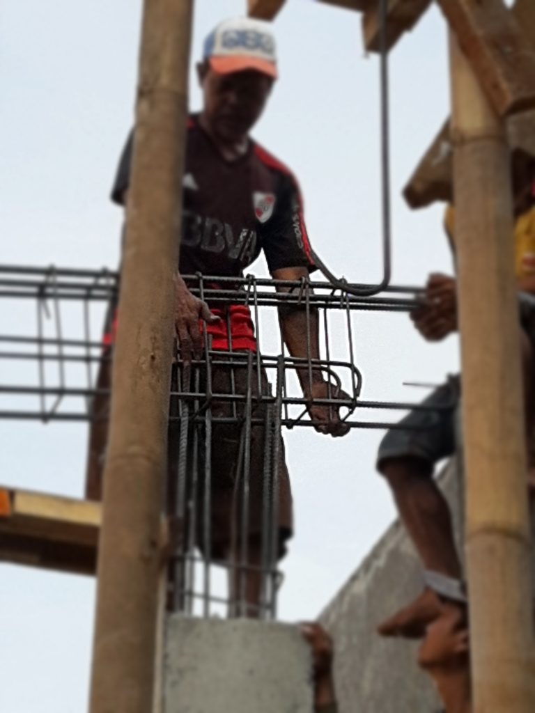 Sementara di sudut yang lain seorang pekerja berteriak kesakitan memegang tangannya yang berdarah. Rupanya akibat kurangnya kesepakatan diantara mereka berdua saat akan mengangkat anyaman besi untuk dirakit. Yang terjepit belum siap, yang mengangkat tanpa perasaan dengan sekuat tenaga: aduh …