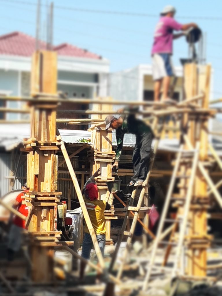 Kemarin saya sempat melihat pekerja bangunan yang sedang bekerja di sebuah kompleks perumahan.Dari pembantu tukang, tukang dan mandor tukang, berjajar rapi walau tidak sama tinggi.